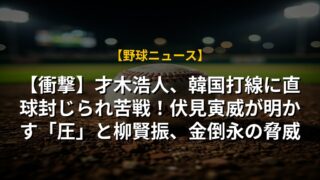 【衝撃】才木浩人、韓国打線に直球封じられ苦戦!伏見寅威が明かす「圧」と柳賢振、金倒永の脅威
