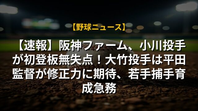 【速報】阪神ファーム、小川投手が初登板無失点!大竹投手は平田監督が修正力に期待、若手捕手育成急務