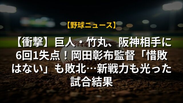 【衝撃】巨人・竹丸、阪神相手に6回1失点!岡田彰布監督「惜敗はない」も敗北…新戦力も光った試合結果