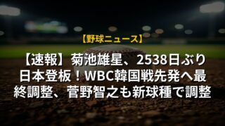 【速報】菊池雄星、2538日ぶり日本登板!WBC韓国戦先発へ最終調整、菅野智之も新球種で調整