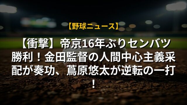 【衝撃】帝京16年ぶりセンバツ勝利!金田監督の人間中心主義采配が奏功、蔦原悠太が逆転の一打!
