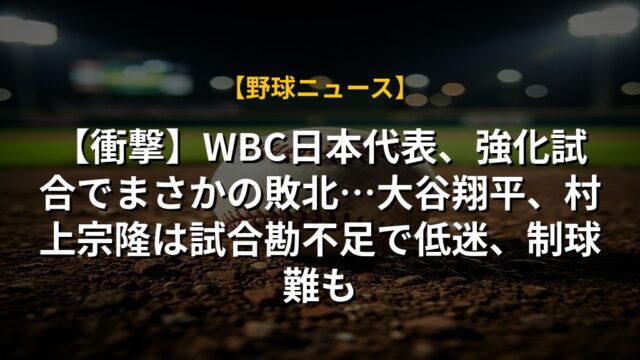 【衝撃】WBC日本代表、強化試合でまさかの敗北…大谷翔平、村上宗隆は試合勘不足で低迷、制球難も