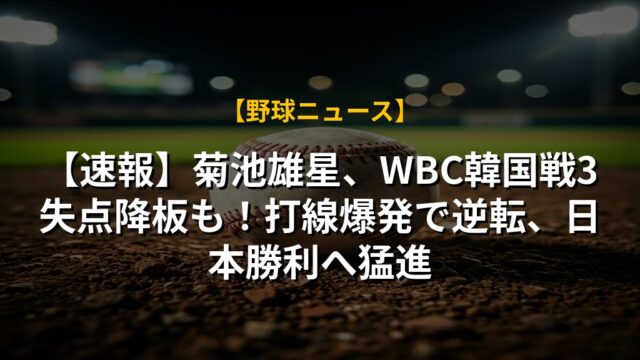 【速報】菊池雄星、WBC韓国戦3失点降板も!打線爆発で逆転、日本勝利へ猛進