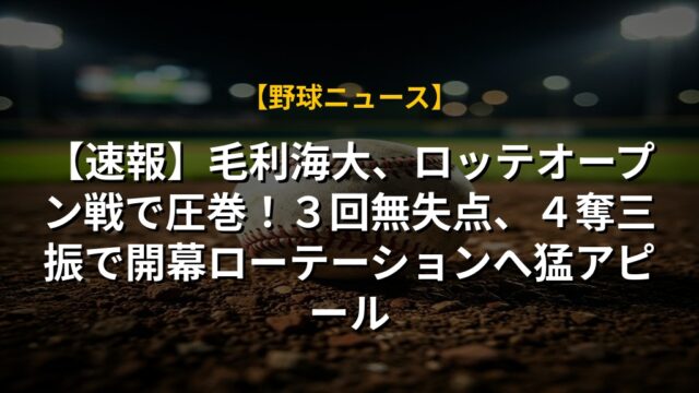 【速報】毛利海大、ロッテオープン戦で圧巻!3回無失点、4奪三振で開幕ローテーションへ猛アピール