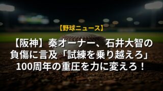 【阪神】秦オーナー、石井大智の負傷に言及「試練を乗り越えろ」100周年の重圧を力に変えろ!