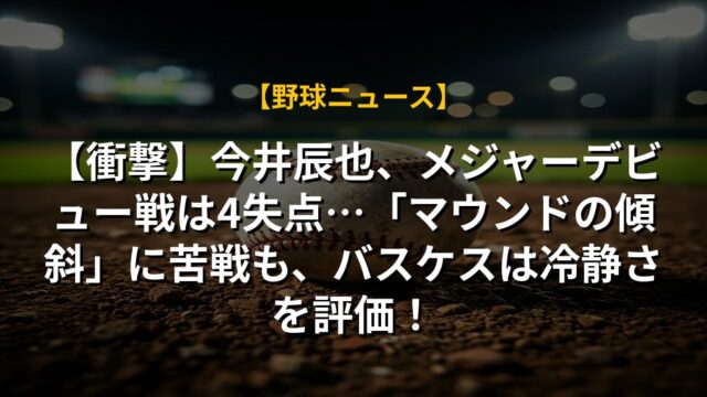 【衝撃】今井辰也、メジャーデビュー戦は4失点…「マウンドの傾斜」に苦戦も、バスケスは冷静さを評価!