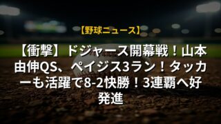 【衝撃】ドジャース開幕戦!山本由伸QS、ペイジス3ラン!タッカーも活躍で8-2快勝!3連覇へ好発進