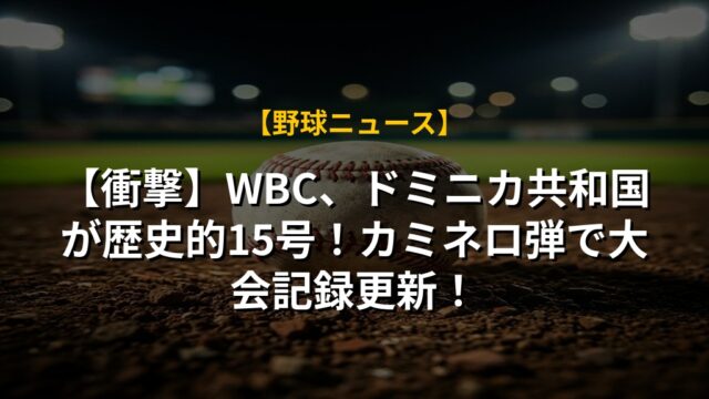 【衝撃】WBC、ドミニカ共和国が歴史的15号!カミネロ弾で大会記録更新!
