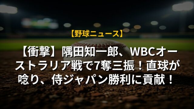 【衝撃】隅田知一郎、WBCオーストラリア戦で7奪三振!直球が唸り、侍ジャパン勝利に貢献!