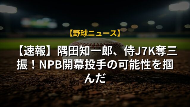 【速報】隅田知一郎、侍J7K奪三振!NPB開幕投手の可能性を掴んだ