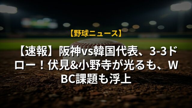 【速報】阪神vs韓国代表、3-3ドロー!伏見&小野寺が光るも、WBC課題も浮上