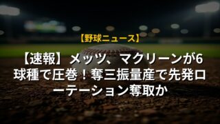 【速報】メッツ、マクリーンが6球種で圧巻!奪三振量産で先発ローテーション奪取か