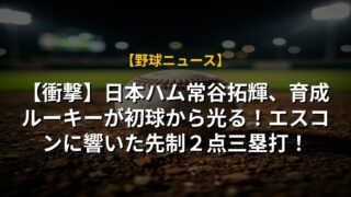 【衝撃】日本ハム常谷拓輝、育成ルーキーが初球から光る!エスコンに響いた先制2点三塁打!