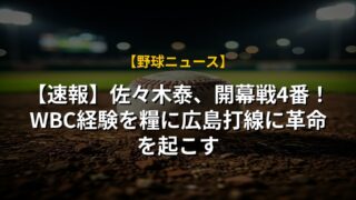 【速報】佐々木泰、開幕戦4番!WBC経験を糧に広島打線に革命を起こす