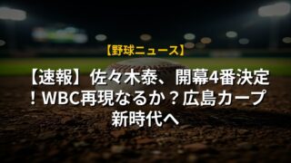 【速報】佐々木泰、開幕4番決定!WBC再現なるか?広島カープ新時代へ