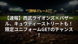 【速報】西武ライオンズ×バザール、キュウティーストリートも!限定ユニフォームGETのチャンス!