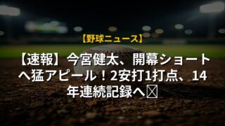 【速報】今宮健太、開幕ショートへ猛アピール!2安打1打点、14年連続記録へ🔥