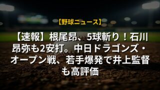 【速報】根尾昂、5球斬り!石川昂弥も2安打。中日ドラゴンズ・オープン戦、若手爆発で井上監督も高評価