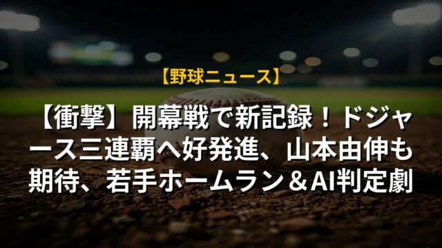 【衝撃】開幕戦で新記録!ドジャース三連覇へ好発進、山本由伸も期待、若手ホームラン&AI判定劇