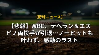 【悲報】WBC、テヘラン&エスピノ両投手が引退…ノーヒットも叶わず、感動のラスト