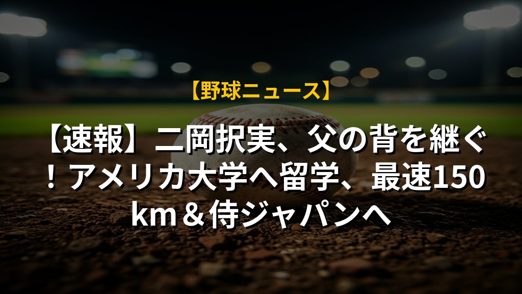【速報】二岡択実、父の背を継ぐ!アメリカ大学へ留学、最速150km&侍ジャパンへ