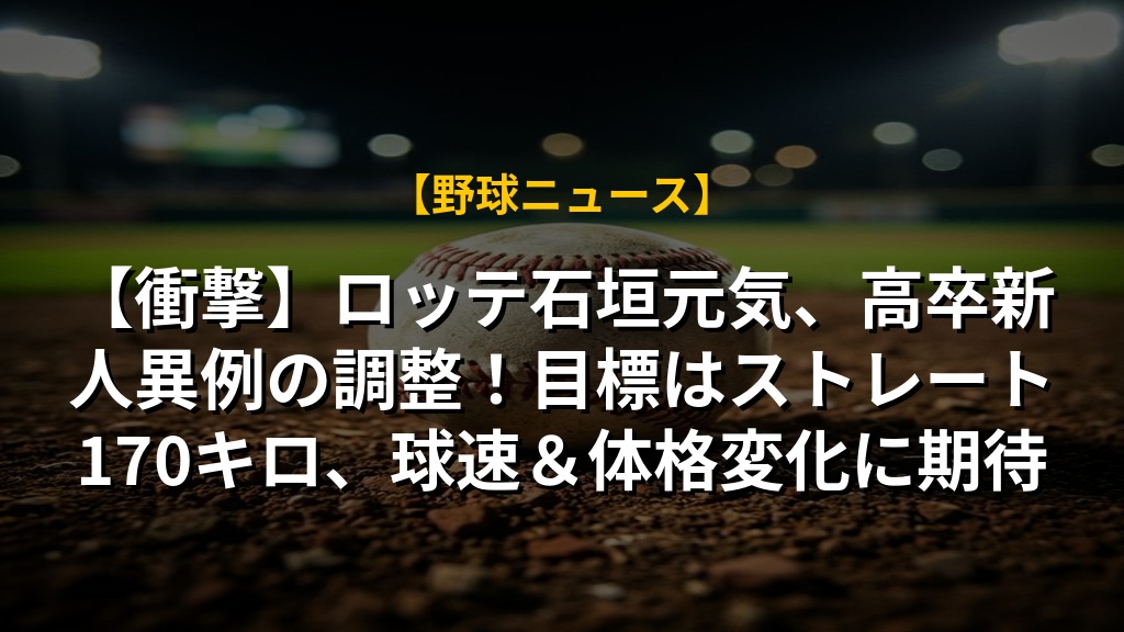 【衝撃】ロッテ石垣元気、高卒新人異例の調整!目標はストレート170キロ、球速&体格変化に期待