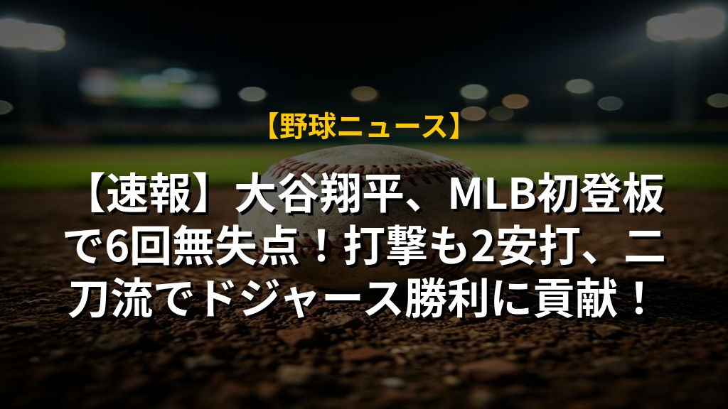 【速報】大谷翔平、MLB初登板で6回無失点!打撃も2安打、二刀流でドジャース勝利に貢献!の注目ポイントまとめ