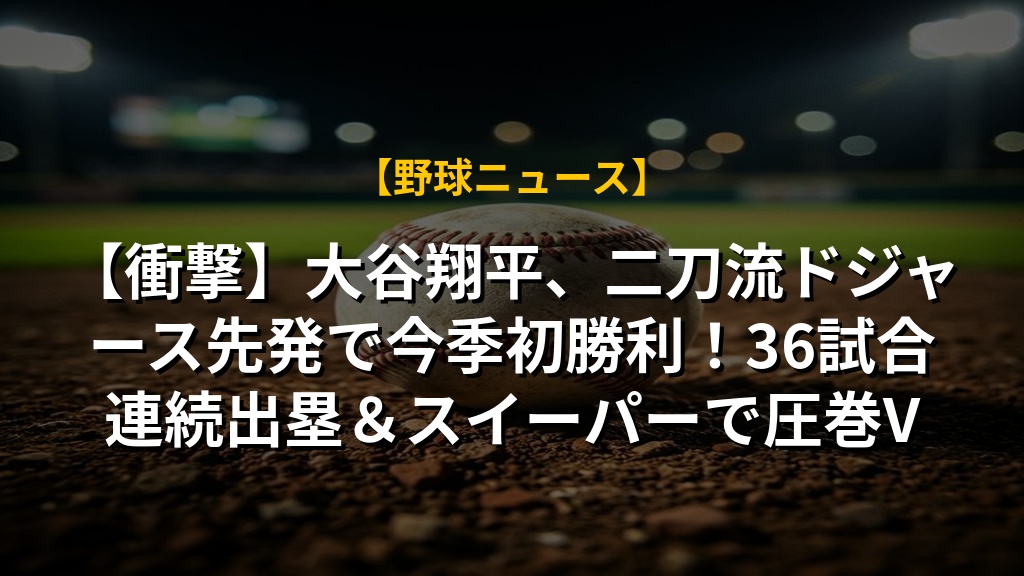 【衝撃】大谷翔平、二刀流ドジャース先発で今季初勝利!36試合連続出塁&スイーパーで圧巻V