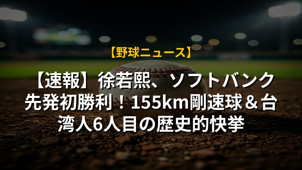 【速報】徐若熙、ソフトバンク先発初勝利!155km剛速球&台湾人6人目の歴史的快挙