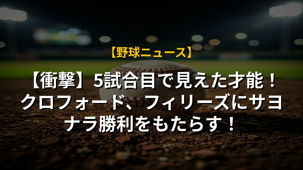 【衝撃】5試合目で見えた才能!クロフォード、フィリーズにサヨナラ勝利をもたらす!の注目ポイントまとめ