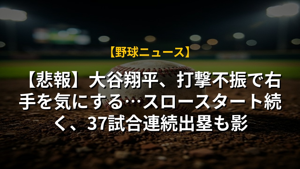 【悲報】大谷翔平、打撃不振で右手を気にする…スロースタート続く、37試合連続出塁も影の注目ポイントまとめ