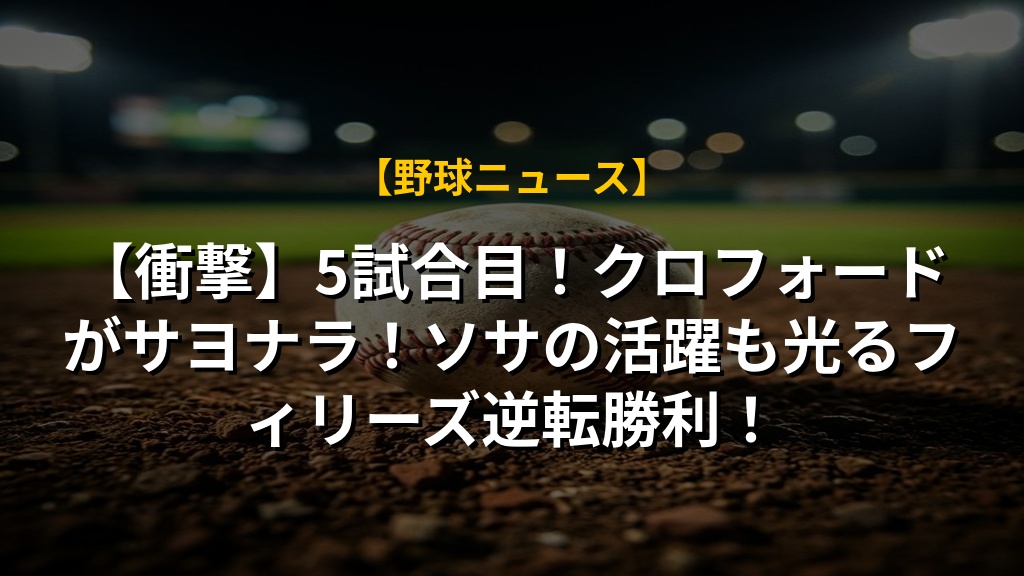 【衝撃】5試合目!クロフォードがサヨナラ!ソサの活躍も光るフィリーズ逆転勝利!の注目ポイントまとめ