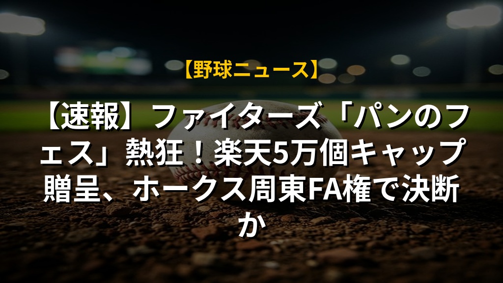【速報】ファイターズ「パンのフェス」熱狂!楽天5万個キャップ贈呈、ホークス周東FA権で決断か