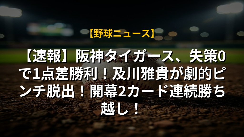 【速報】阪神タイガース、失策0で1点差勝利!及川雅貴が劇的ピンチ脱出!開幕2カード連続勝ち越し!