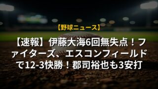 伊藤大海投手の初勝利は、単なる勝利以上の意味を持つでしょう。