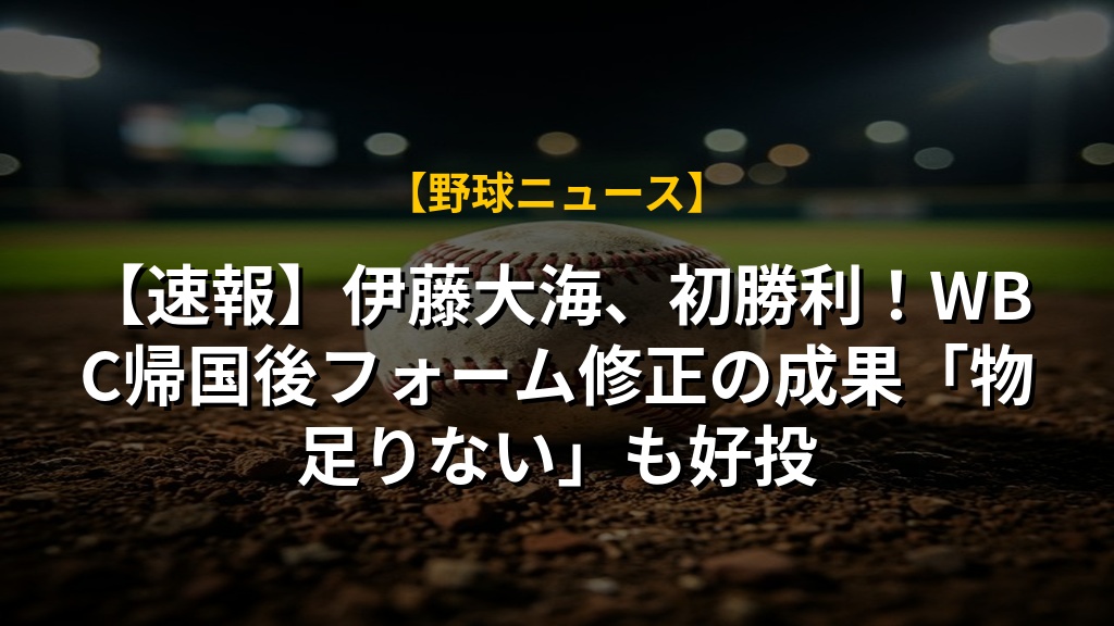 日本ハムの伊藤大海投手が、オリックス戦で見事初勝利を飾りました!WBCからの調整は苦戦が続きましたが、フォーム改造で手応えを掴み始めているようです。本人は「物足りない」と課題を口にしていますが、状態が上向きになっていることは間違いありません。