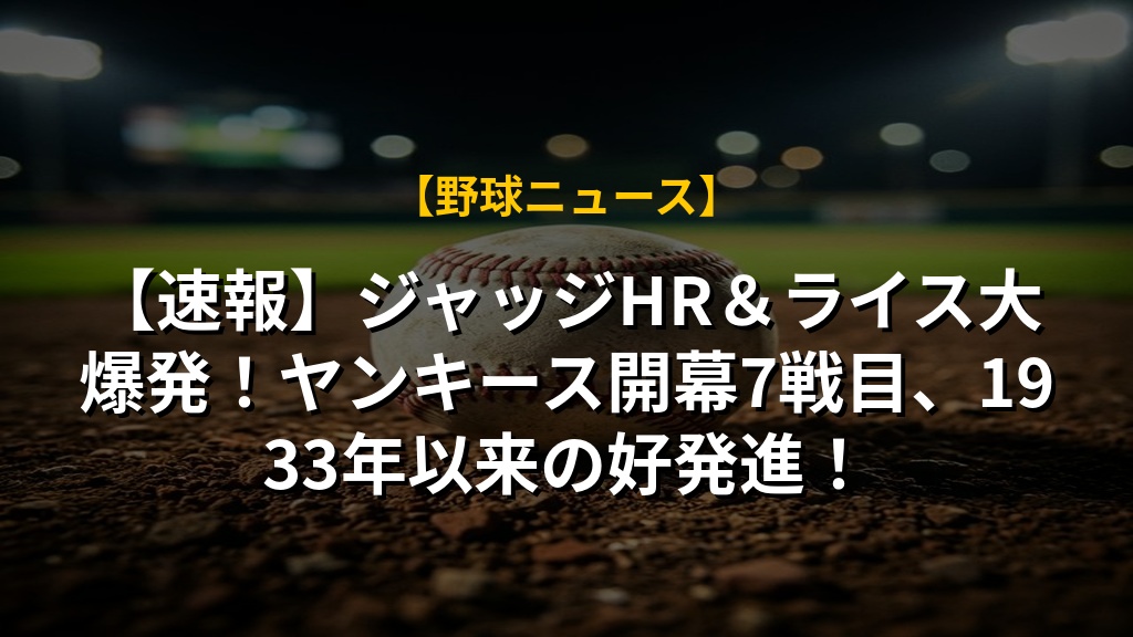 【速報】ジャッジHR&ライス大爆発!ヤンキース開幕7戦目、1933年以来の好発進!