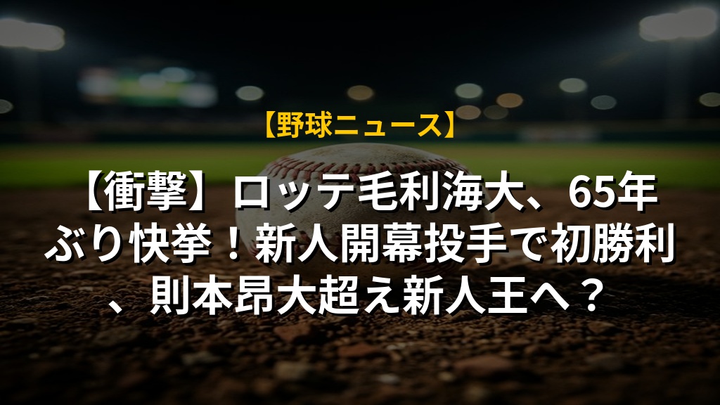 千葉ロッテの毛利海大投手が新人ながら開幕投手を務め、プロ初先発で初勝利を挙げました。1960年から2025年までの間に新人で開幕投手を務めた投手はわずか4名であり、毛利投手の抜擢は非常に稀なケースです。