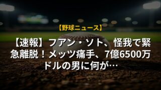 【速報】フアン・ソト、怪我で緊急離脱!メッツ痛手、7億6500万ドルの男に何が…ソト選手怪我のニュース概要 ニューヨーク・メッツのフアン・ソト選手は、現地時間19日のサンフランシスコ・ジャイアンツ戦の第1回に、右ふく...
