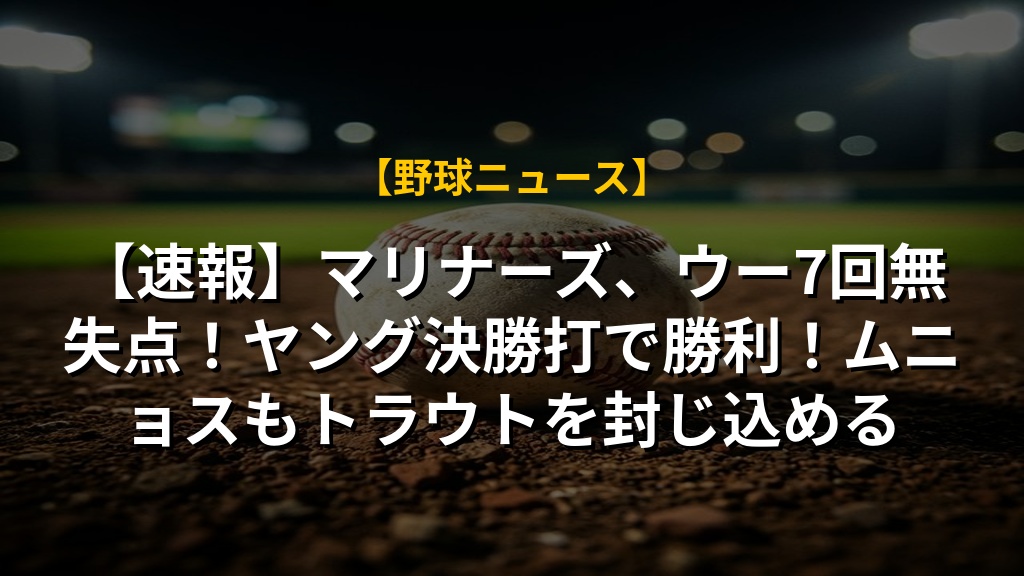 【速報】マリナーズ、ウー7回無失点!ヤング決勝打で勝利!ムニョスもトラウトを封じ込めるの注目ポイントまとめ
