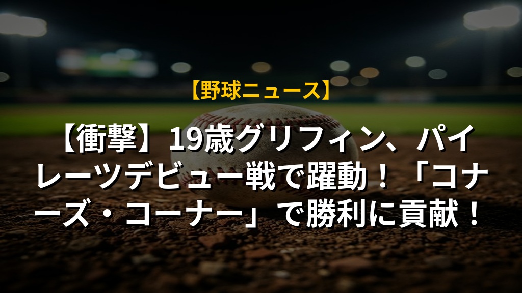【衝撃】19歳グリフィン、パイレーツデビュー戦で躍動!「コナーズ・コーナー」で勝利に貢献!