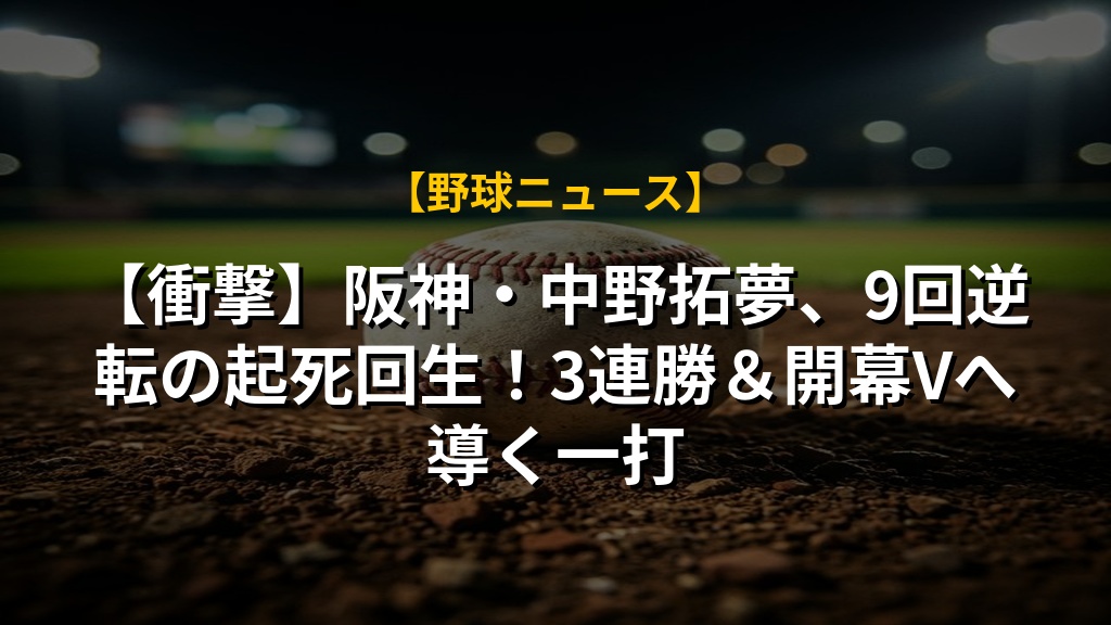 - 阪神は劇的な逆転勝利で3連勝を飾り、開幕3カード連続の勝ち越しを達成し、チームに勢いづけられた。