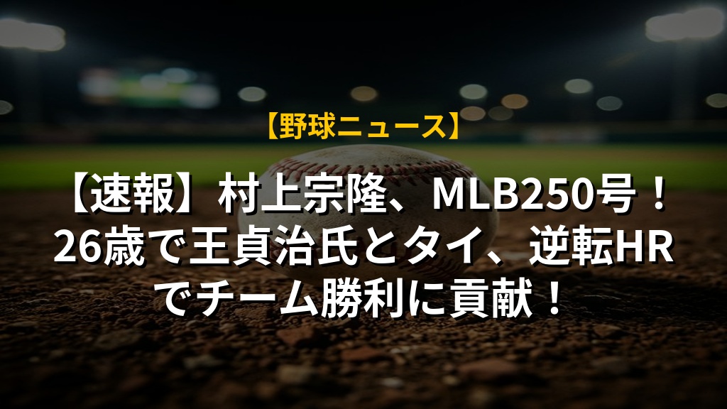 村上宗隆選手が、MLBでメモリアルな一発を放ちました!日米通算250号は、王貞治氏と並ぶ日本人最年少記録です。チームを逆転勝利に導いた一打は、まさに価値のある一発でした。