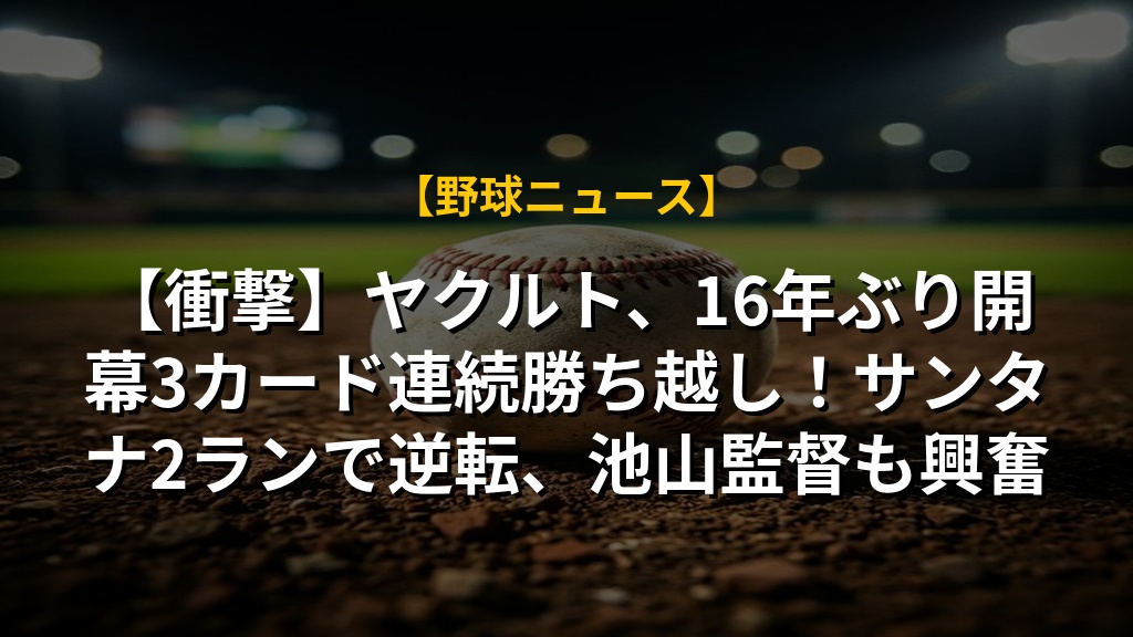 ヤクルトが劇的な逆転勝利を収め、2014年以来16年ぶりに開幕3カード連続の勝ち越しを達成しました。
