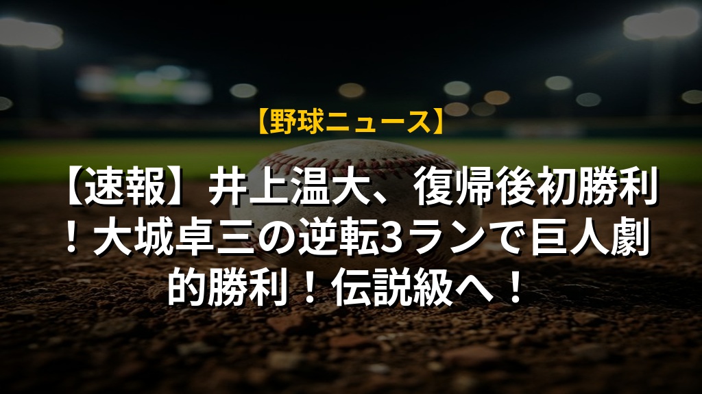 【速報】井上温大、復帰後初勝利!大城卓三の逆転3ランで巨人劇的勝利!伝説級へ!
