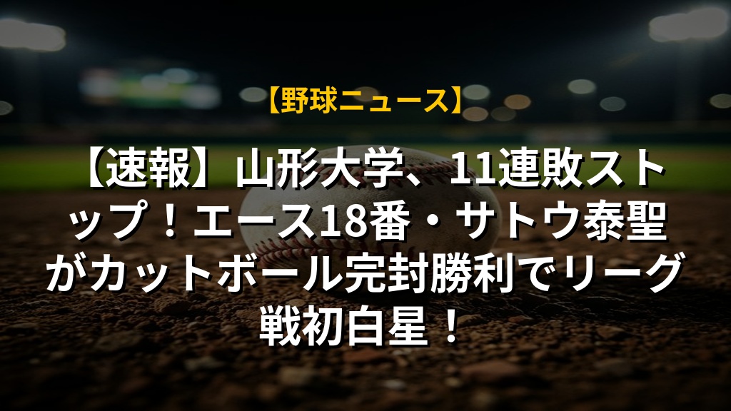 【速報】山形大学、11連敗ストップ!エース18番・サトウ泰聖がカットボール完封勝利でリーグ戦初白星!の注目ポイントまとめ