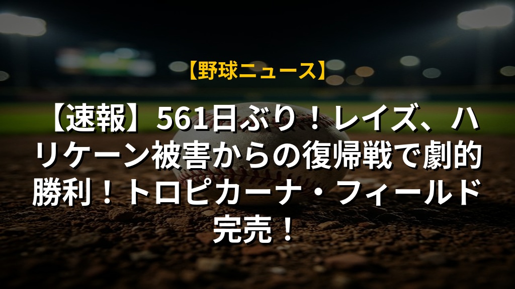 561日ぶりに本拠地トロピカーナ・フィールドに復帰したレイズが、カブスとの試合で見事勝利しました。ハリケーンからの復興を象徴する試合で、約6000万ドルをかけた改修も完了し、ファンも選手も新しいスタジアムを満喫できたようです。新オーナーのもと、将来的な新球場建設も視野に入っており、レイズは新たな一歩を踏み出しました。今回の完売は、チームへの熱い応援と、今後の更なる発展への期待が込められていると感じます。
