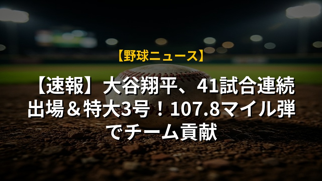 【速報】大谷翔平、41試合連続出場&特大3号!107.8マイル弾でチーム貢献の注目ポイントまとめ