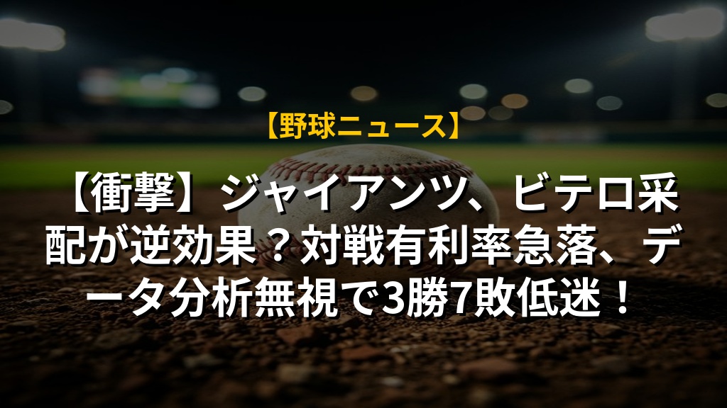 【衝撃】ジャイアンツ、ビテロ采配が逆効果?対戦有利率急落、データ分析無視で3勝7敗低迷!