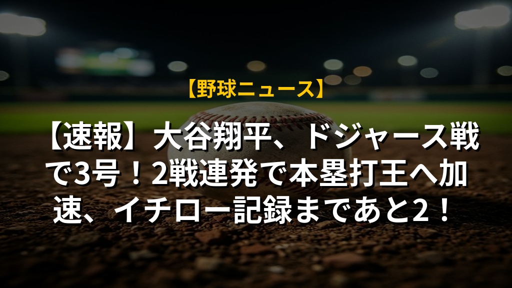 【速報】大谷翔平、ドジャース戦で3号!2戦連発で本塁打王へ加速、イチロー記録まであと2!